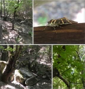 L’azzurro intenso del cielo è illuminato da un sole potente fin dal primo mattino, sembra davvero che questa luce non possa mai cambiare. Dopo colazione facciamo una piccola sosta in una farmacia di Archangelos ad acquistare della crema doposole (che qui va via come il pane…), quindi proseguiamo per la meta di oggi, Petaloudes, la famosa Valle delle Farfalle che chiunque venga qua non può mancare di visitare. Si trova a una venticinquina di chilometri a sud di Rodi città, in una zona interna un po’ montuosa, ma la strada non è troppo malandata anche se ci sono parecchie curve nel tratto compreso tra la via principale verso nord e il bivio a sinistra che indica la Valle. Ci arriviamo abbastanza presto, ma nonostante l’orario ci sono già molte auto e qualche pullman di turisti pronti ad affrontare il bosco pur di vedere le più famose farfalle di Rodi. Lasciamo l’auto al parcheggio e facciamo il biglietto a un piccolo baracchino prima dell’entrata, e lì ci rendiamo conto che la maggior parte dei visitatori in attesa di entrare parla italiano.