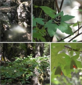 Mi fermo a fare moltissime foto, l’ambiente è fresco e piacevole, il verde splende tutto intorno, le rocce si alzano in pareti ripide in parte coperte di vegetazione, l’acqua corre dappertutto formando piccoli laghi, e a volte ruscelli con cascatelle gorgoglianti che luccicano nella luce del sole che filtra tra i rami. Il fresco è piacevole e profumato di salmastro.